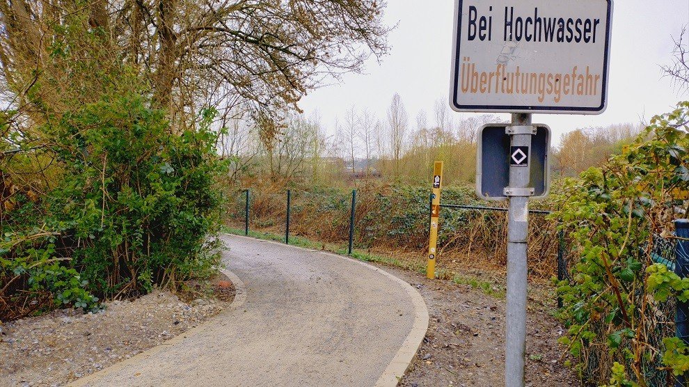 Er zijn randopsluitingen van betonsteen geplaatst, waarbij het fietspad zijn oorspronkelijke breedte van 2,5 meter heeft teruggekregen. Voor de deklaag is het uiterst flexibele, draagkrachtige, slijtvaste en stabiele waterdoorlatende Koersmix DurEko-mix® gebruikt. Het fietspad loopt door de uiterwaarden van de Ruhr in de wijk Überruhr-Hinsel. Koers DurEko-mix is een extreem resistent materiaal dat bij overstromingen niet uitspoelt. Het is precies wat dit fietspad nodig had om de komende 10 jaar onderhoudsvrij te blijven.