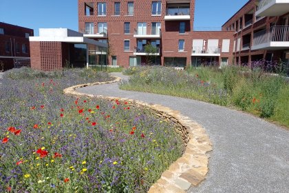 Das Minerve-Neubauprojekt in Edegem ist energieeffizient, luxuriös und von viel Grün umgeben und besteht aus Luxuswohnungen mit einer sehr attraktiven Außengestaltung. Die Gestaltung des Innengartens ist eine Kombination aus einer schönen Blumenmischung und DurEko-mix-Wanderwegen.