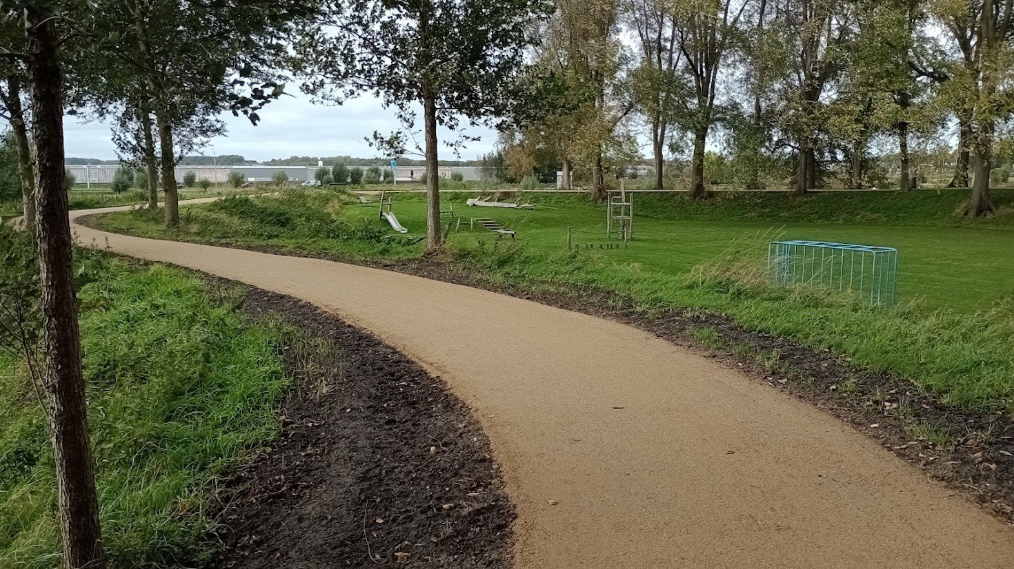 Als vervanging is gekozen voor KoMex Geel, een waterdoorlatende halfverharding met een warme, natuurlijke gele kleur. Deze kleur sluit uitstekend aan bij het omliggende landschap en de historische dijkstructuur, waardoor het pad visueel minder dominant aanwezig is dan asfalt. Tegelijkertijd ontstaat een rustig en natuurlijk beeld dat past bij het karakter van de Oude Koedijk.