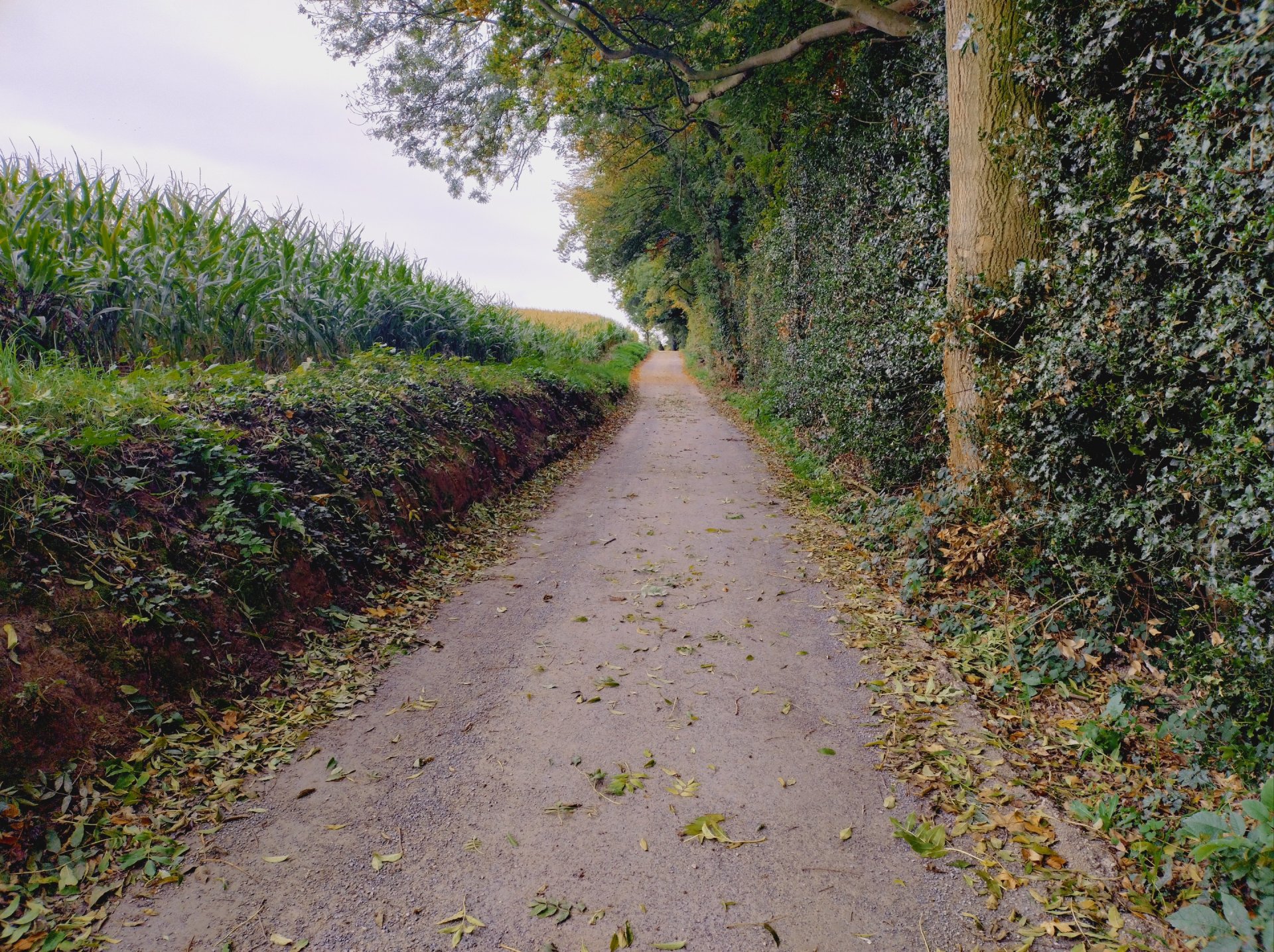 Der neue Weg, der auf einem Hang richtung das "Kindernest Klein Kauhaus" führt und dort als Sackgasse endet, wird nur von Bauern und Anwohner befahren. Der Privatweg liegt auf bis zu 8% Gefälle und er liegt an einem Hang. Die Herausforderung des DurEko-mix BIO's liegt vor Ort darin, dass hier viel Regenwasser zusammen kommt und nur über den Weg ins Tal fließen kann. Auf einer Seite des Weges geht es steil hoch, auf der anderen Seite geht es Steil hinunter. Das Wasser kann hier nicht seitlich abfließen. Weil der Weg eine Querneigung von 2-3% hat, fließt das Wasser an den Seiten vom Weg ins Tal.