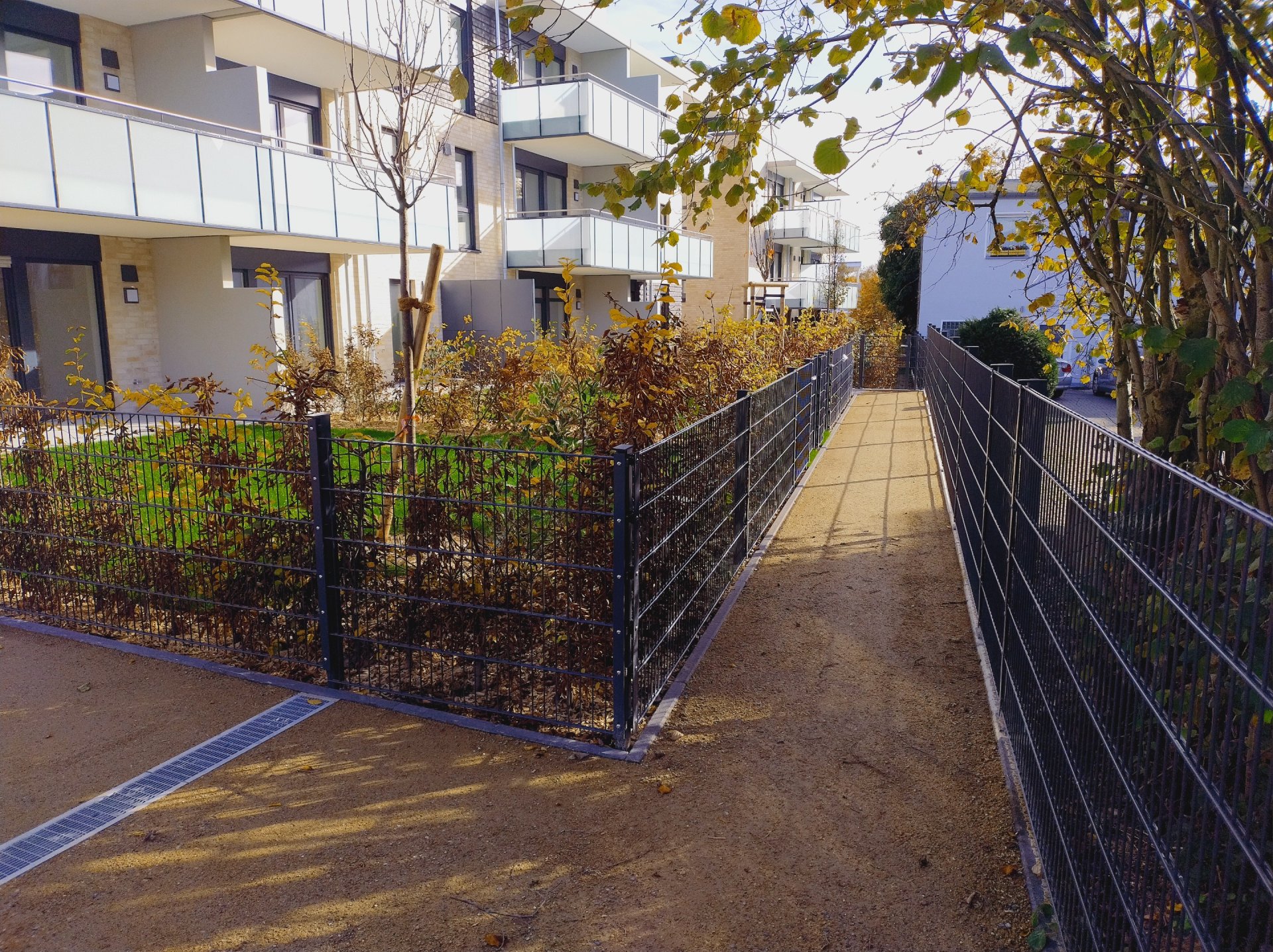 Die Fa. Galabau Rainer Eschbach aus Much hat im Herbst 2025 auf mehrere kleine Spielplätze und Gehwege am Neubauquartier in de Uferstraße in Leichlingen Koers KoMex Gelb Deckschichten eingebaut. Das Quartier umfasst 69 neue Eigentumswohnungen, verteilt über fünf Gebäude und liegt auf wenige hundert metern von Wupper und Stadtmitte entfernt.