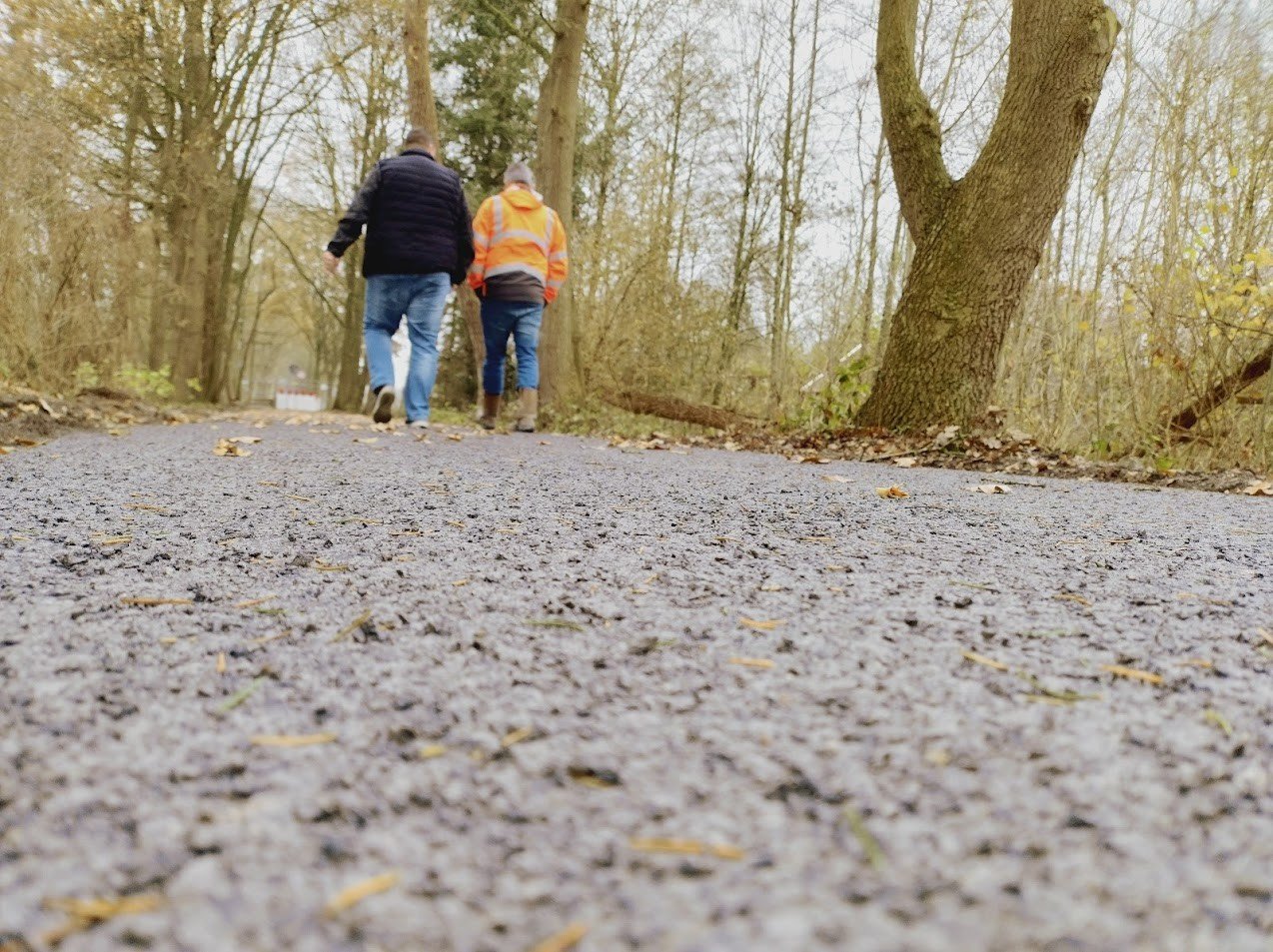 Die wassergebundene Wegedecke KoMex Anthrazit ist eine ideale Lösung angesichts der aktuellen Erwärmung der Städte. Die Hauptursache der Erwärmung ist der nicht-wasserdurchlässige Asphalt. Dieser Speichert Tagsüber sehr viel Wärme und Wasser hat keine Möglichkeit in den Unterboden zu gelangen. KoMex Anthrazit bietet für diese Probleme eine Lösung. Die Oberfläche heizt nur langsam auf und ist wasserdurchlässig. Die Oberflache ist sehr Stabil und Erosionsbeständig. Das Material staubt kaum und schmiert nicht. Neben den vielen praktischen Vorteilen hat KoMex eine sehr authentische Ausstrahlung, im Einklang mit der Natur. Die wassergebundene Wegedecke ist perfekt für Rad- und Wanderwege im Wald, durch den Park und auf dem Friedhof.